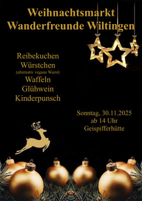 Weihnachtsmarkt des Wandervereins am 30. auf der Geispifferhütte.